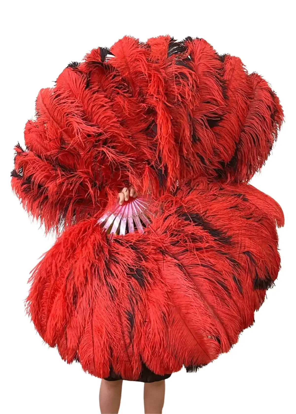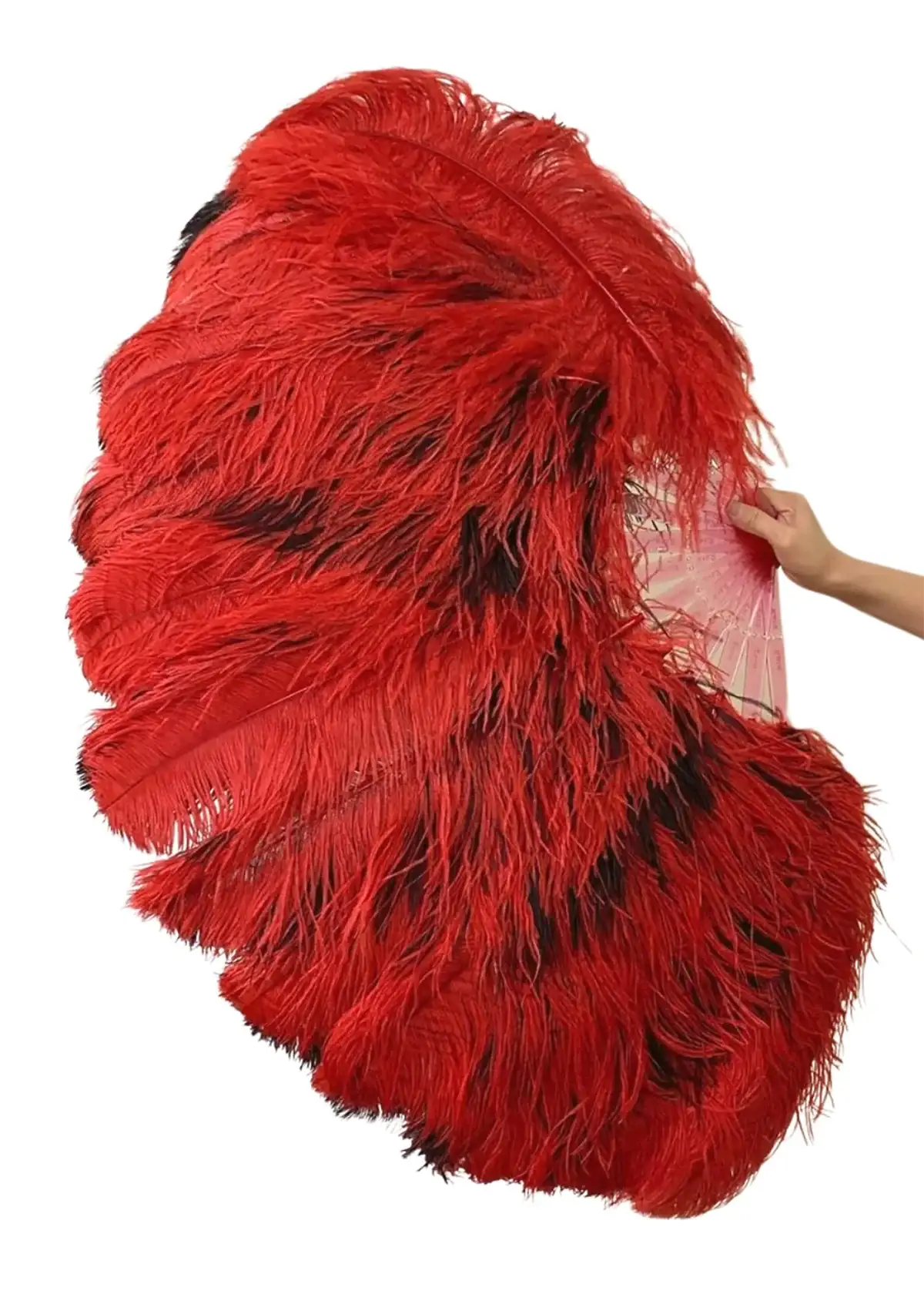 Red & black Single layer Double side Ostrich Feather Fan 25"x 47"