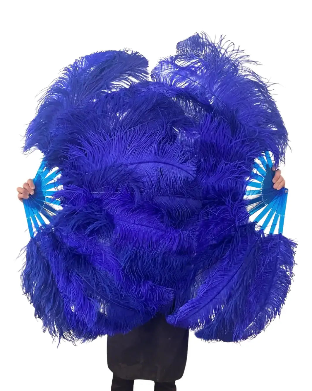 Special Offer Two tones of Royal blue color A pair Single layer Feather fan 25"x 45"