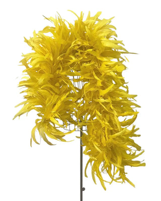Gelber Schal mit Boa-Schwanzbesatz aus großen Hahnenfedern