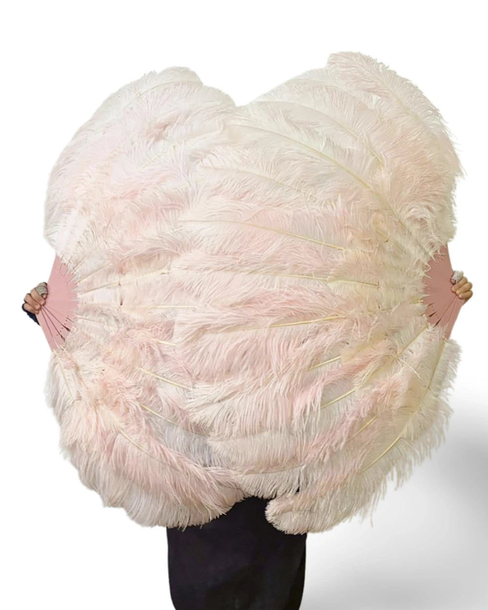 Abanico de plumas de avestruz ruborizado de 2 capas 30"incógnita 54"