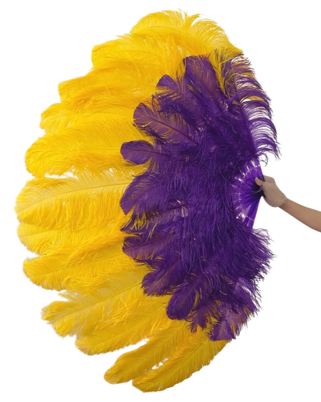 Violeta mixta & Abanico de plumas de avestruz de dos capas, color amarillo dorado, talla XL, 34'' x 60''