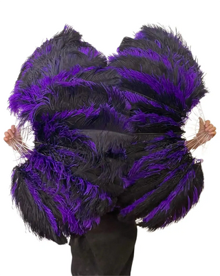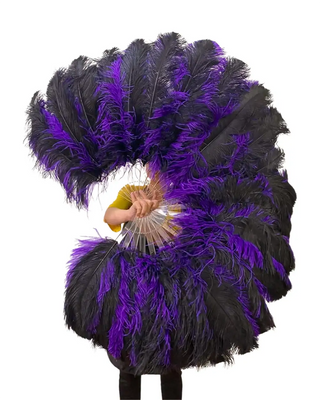 violet & Éventail en plumes d'autruche noir simple couche double face 25"x 47"