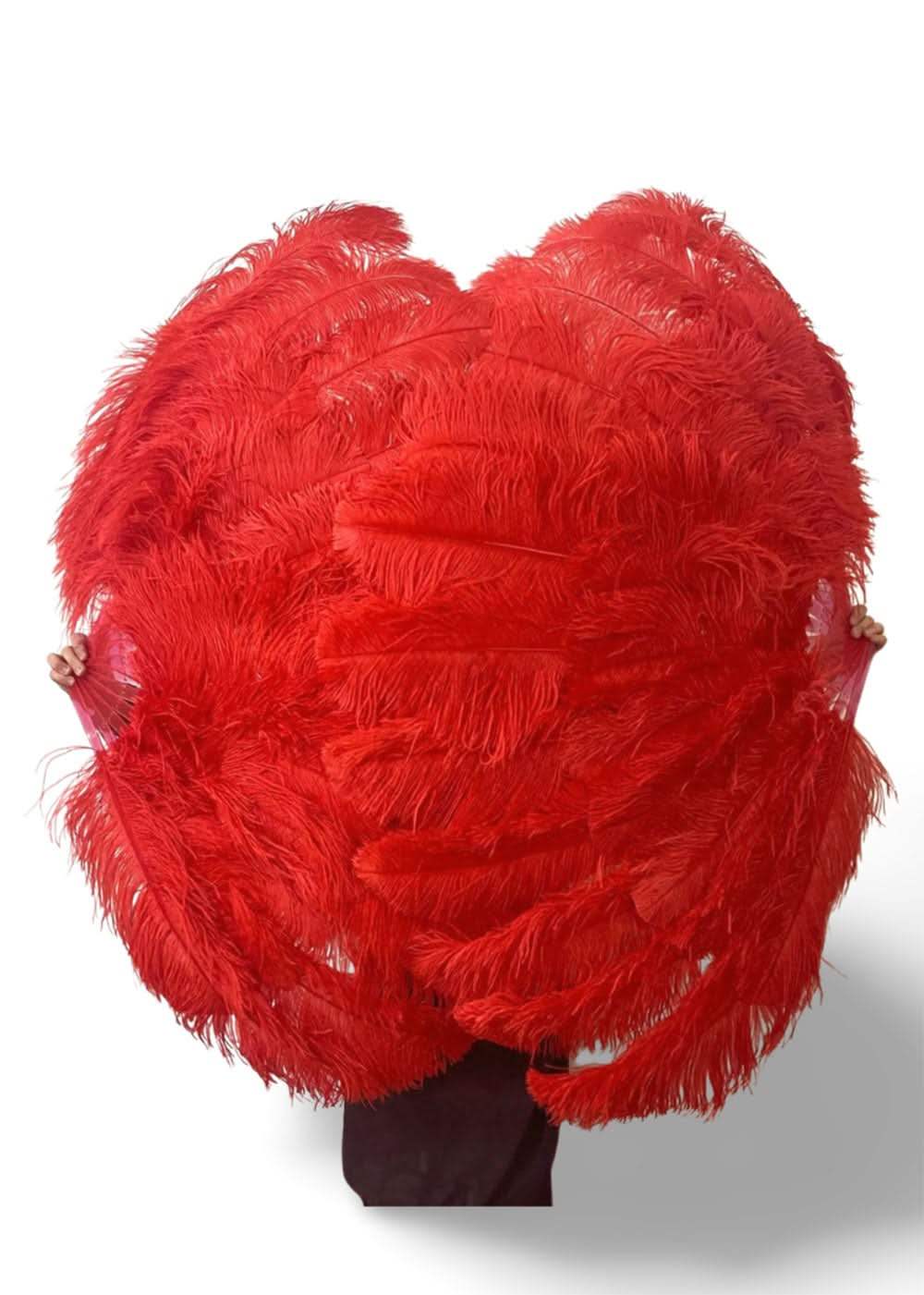 Éventail en plumes d'autruche XL rouge somptueux à 2 couches 34"x 60"