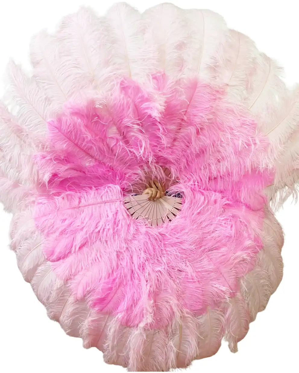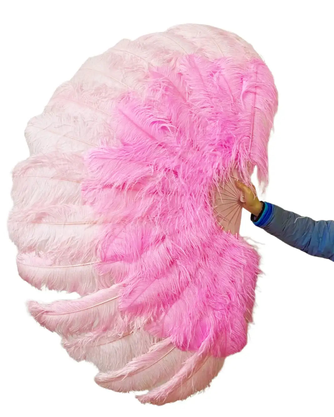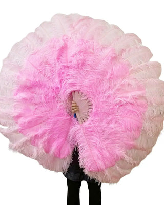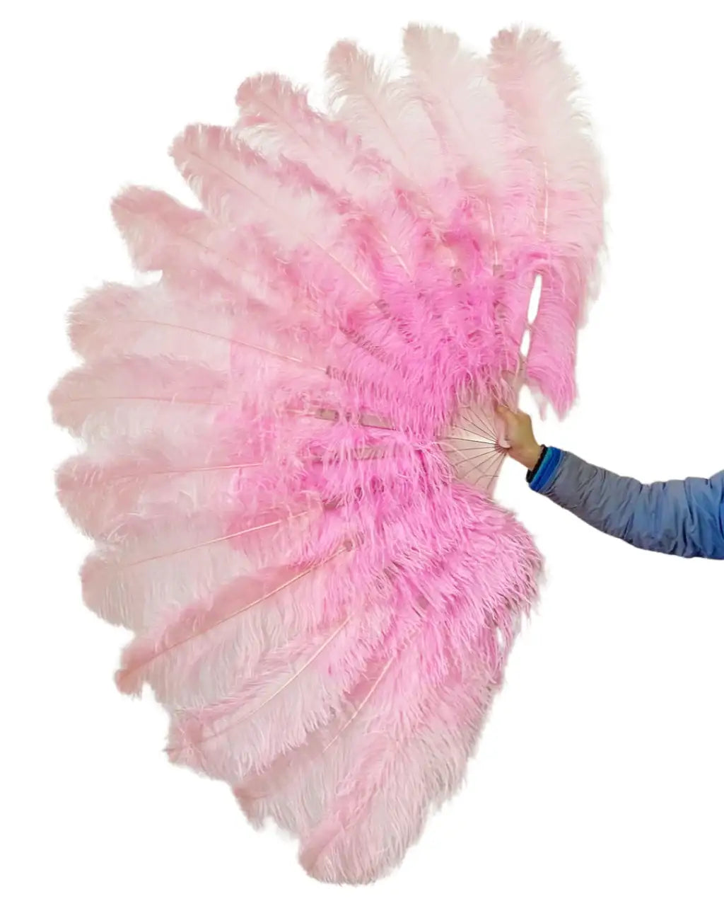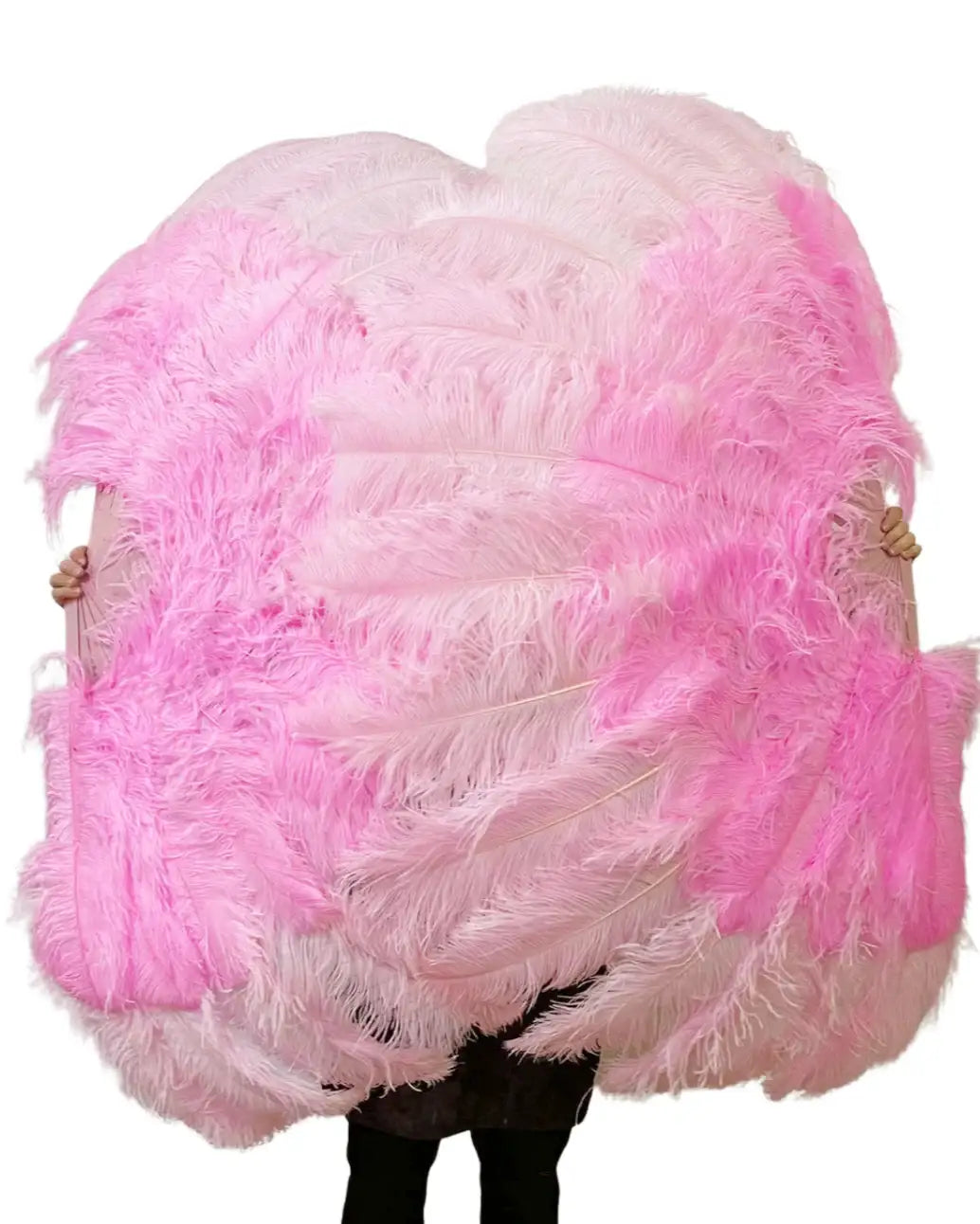 Ventaglio di piume di struzzo XL a 2 strati, completamente aperto a 180 gradi, rosa misto/rosa chiaro 34"X 68"