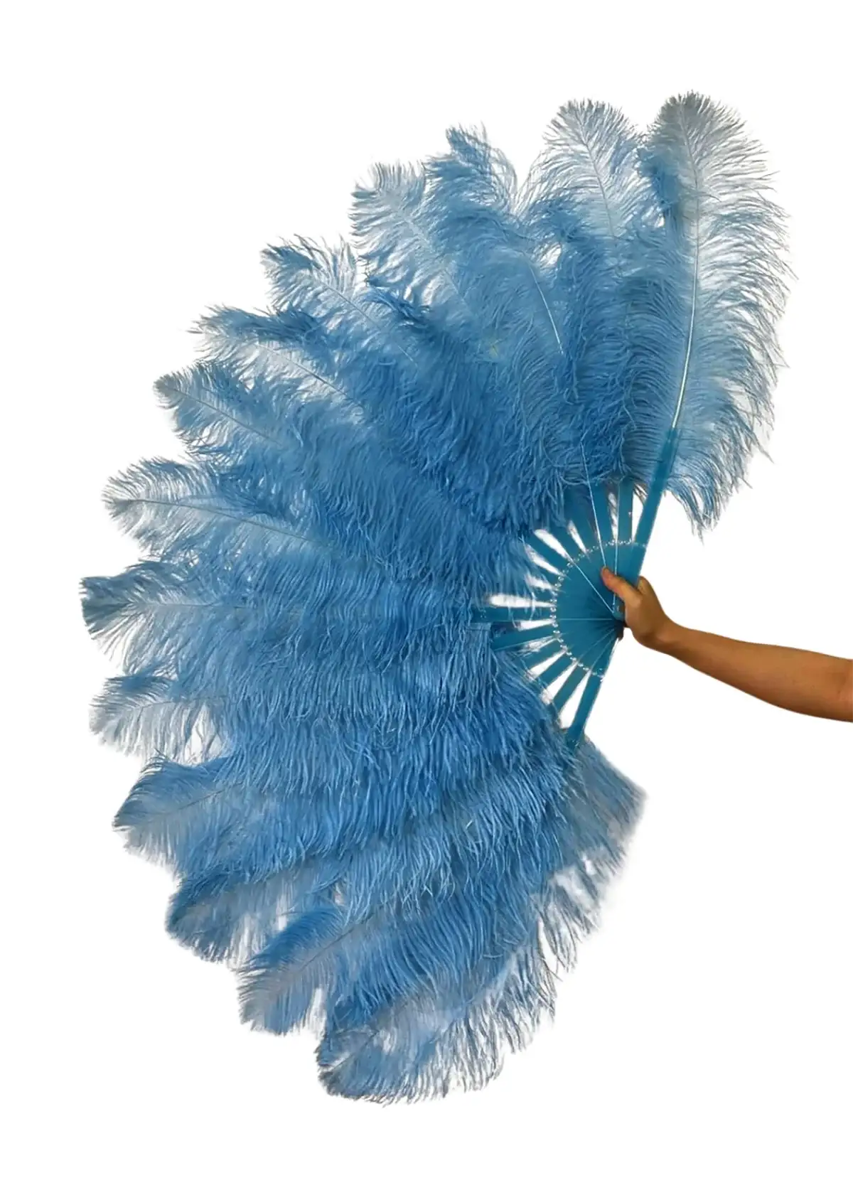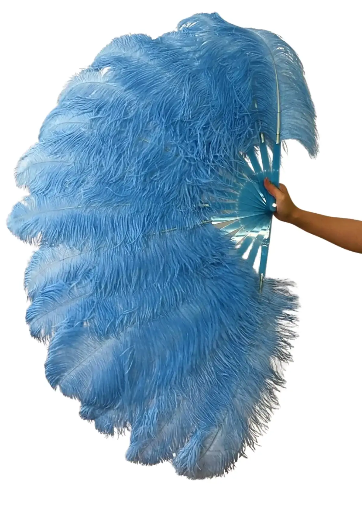 ventaglio di piume di struzzo a strato singolo azzurro, completamente aperto a 180 gradi 25"X 50"