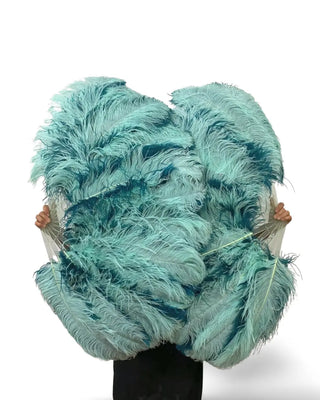 ミント & ティール 単層 両面 ダチョウ羽根扇子 25"× 47"