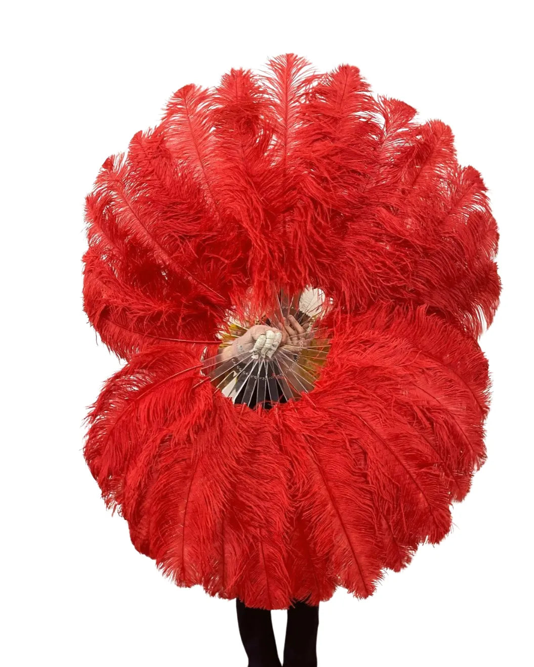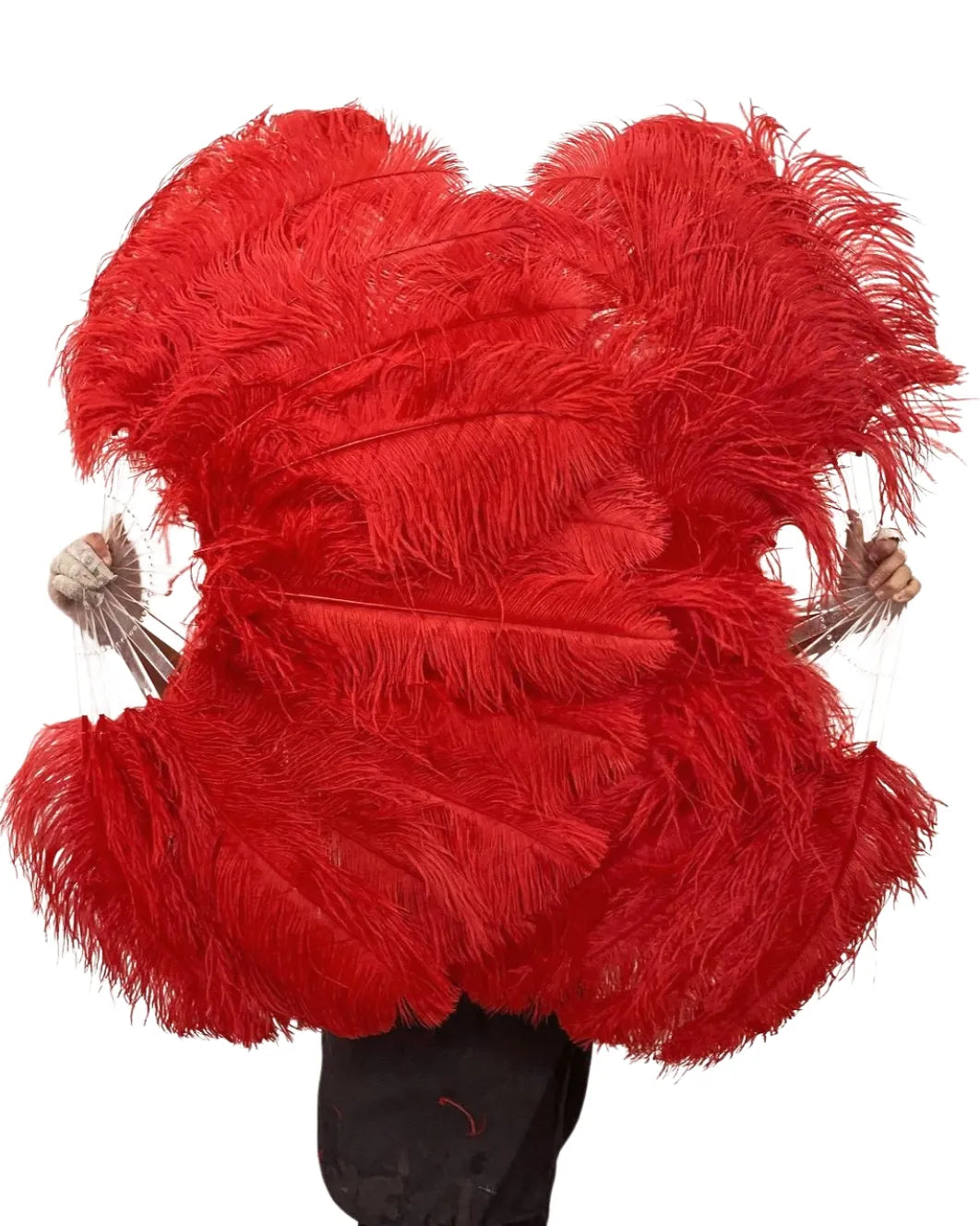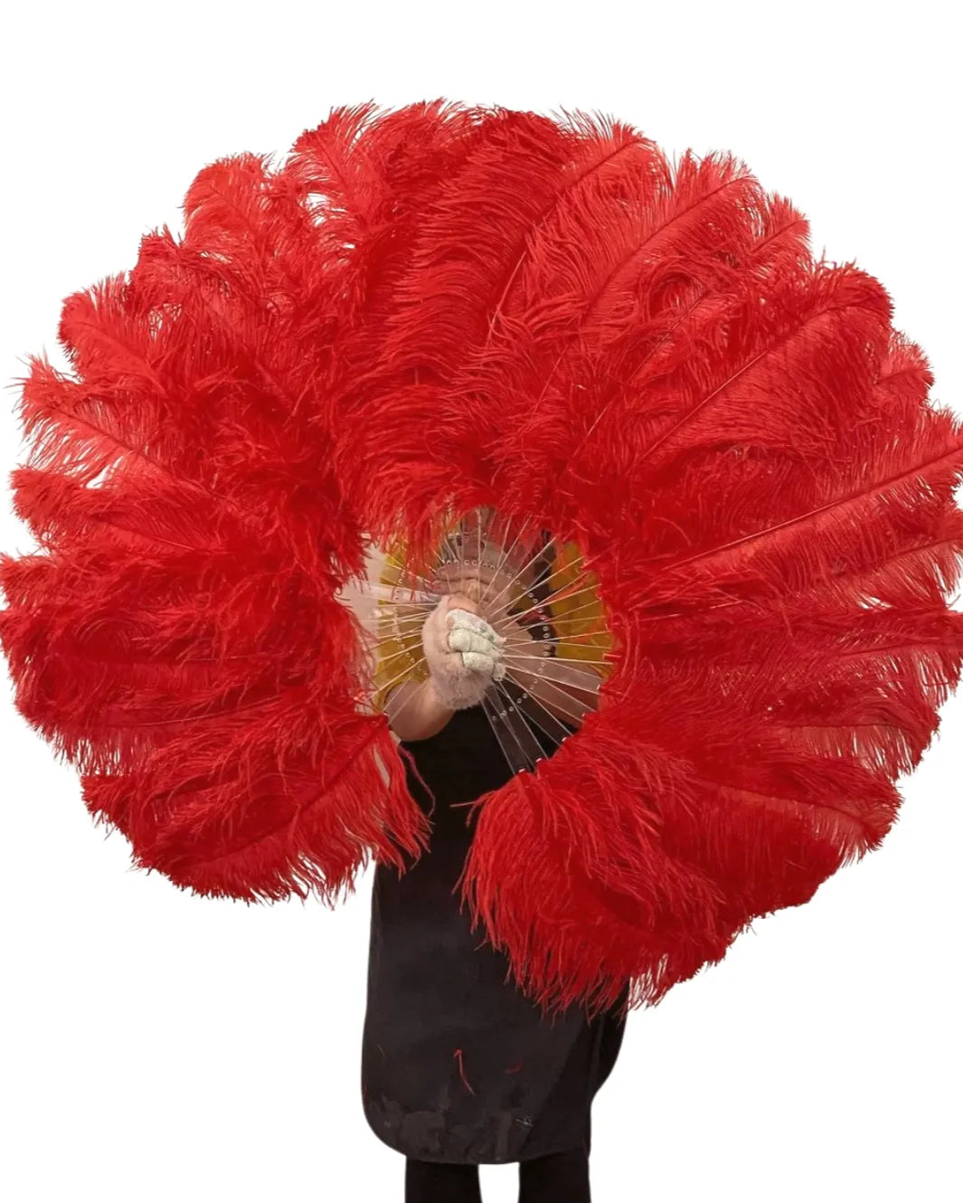 Red single layer Ostrich Feather Fan Full open 180 degree 25"x 50"